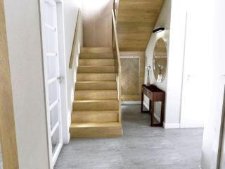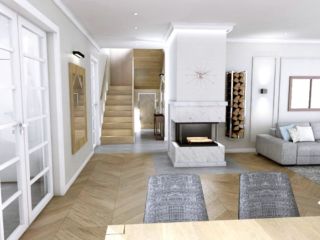 Projekt sporządzony został dla młodego małżeństwa, właścicieli domu jednorodzinnym znajdującego się w okolicach Wejherowa. Klienci pragnęli by wnętrze domu, w którym przyjdzie im wkraczać w wiek średni, było zarazem komfortowe jak i satysfakcjonujące estetycznie. Zdecydowali się na połączenie klasycznej elegancji i nowoczesności.