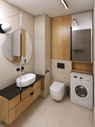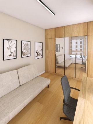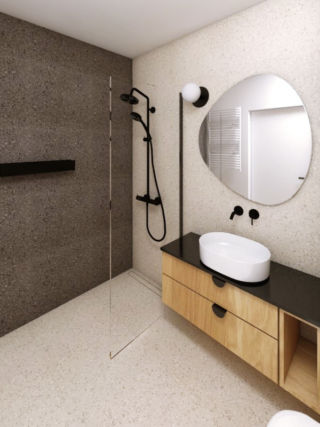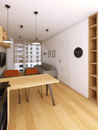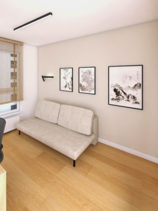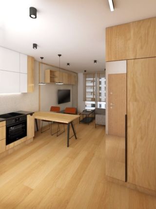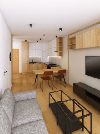 Na początku 2021 roku zgłosił się do nas klient w tamtym okresie mieszkający w Holandii z prośbą o przygotowanie projektu aranżacji wnętrz dla nowo zakupionego mieszkania w Gdańsku. Jego planem było przeniesienie się na stałe do Gdańska i powrót do rodzinnych stron po latach spędzonych na pracy jako dentysta poza granicami kraju. Ze względu na dzielącą go odległość między krajem ojczystym a miejscem gdzie w tamtym czasie wykonywał swoją pracę poza projektem klient zdecydował się powierzyć nam także nadzór oraz całą realizacją inwestycji co śmiało możemy nazwać wykończeniem mieszkania „pod klucz”. Współpracę rozpoczęliśmy od przygotowania projektu. Jednymi z pierwszych oczekiwań klienta było stworzenie wnętrz dobrze rozplanowanych pod kątem funkcjonalności a także dostosowania ich do jego zamysłu jakim była m.in.aranżacja wnętrz łącząca cechy stylu minimalistycznego, japandi oraz nowoczesnego. Idea w głowie klienta narodziła się dzięki wielu zagranicznym podróżom oraz poznaniu i obserwacji zagranicznych miejsc takich jak np. wnętrza hotelowe azjatyckich obiektów. Jednym z kierunków, do których najczęściej podróżował była właśnie Japonia, którą miał okazję zwiedzić aż pięciokrotnie. Po zapoznaniu się z inspiracjami, które otrzymaliśmy, uwzględnieniu kontekstu i położenia mieszkania a także ciekawej architektury oraz wnętrz budynku, których częścią jest lokal mieszkalny naszego klienta uznaliśmy, że chcemy niebezpośredniego nawiązać do Kraju kwitnących wiśni. Podczas pierwszej wizyty na inwestycji na gdańskim Bastionie Wałowa bardzo spodobał nam się standard wykończenia budynku, obiekt położony w centrum Gdańska wykończony został cegłą oraz industrialnymi blaszanym elementami, wnętrza obiektu oraz jego przestrzenie wspólne wykończone były również w industrialno – nowoczesnym stylu. Dla przełamania surowego charakteru w holu wejściowym, korytarzach i innych wnętrzach obiektu pojawiły się ciekawe elementy dekoracyjne w kolorze dębowego drewna. Czerpiąc i inspirując się wyżej opisanym obiektem a także chcąc uwzględnić oczekiwania Pana Piotra postanowiliśmy, że jego wnętrza będą stylistycznie nawiązywały zarówno do Japonii oraz w pewnym stopniu do architektury obiektu. Styl Japandi charakteryzuje minimalizm, prostota i oszczędność form a także zamiłowanie do naturalnych surowców takich jak np. drewno czy kamień. Gdy myśleliśmy o kolorystyce oraz materiałach wybór był prosty – zdecydowaliśmy się wybierać z palety kolorów ziemi oraz zastosować naturalne i szlachetne materiały.